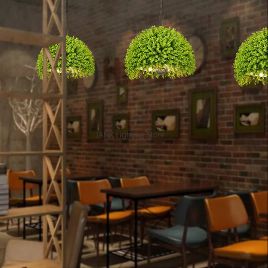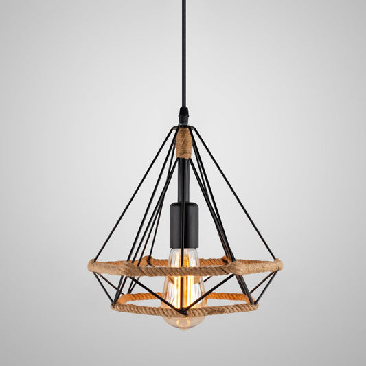 Suspension végétale cage noire moderne avec abat-jour en verre