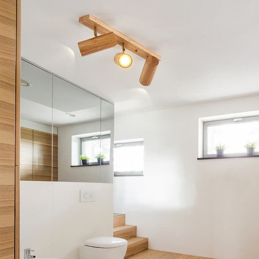 Plafonnier japonais bois massif spots orientables design